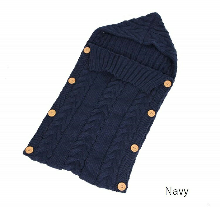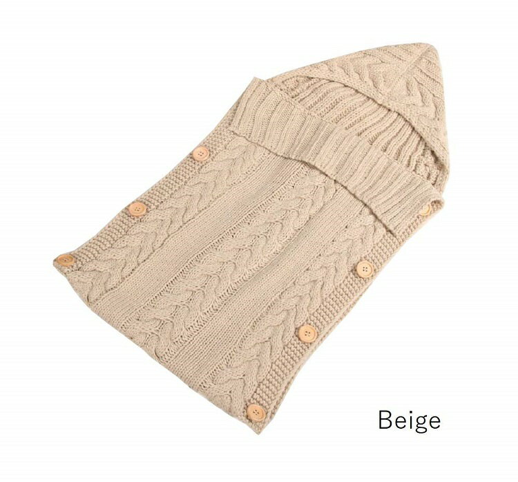 ベビー ケーブル編み ニット おくるみ ブランケット 寝袋 全5種(ベージュ/ネイビー/ダークグレー/ライトグレー/ブルー)■ 商品説明ベビーケーブル編みニットおくるみ 温かみのあるニットにサイドにボタンが付いたクラッシックスタイル フード付きで頭も寒さから保護されます。